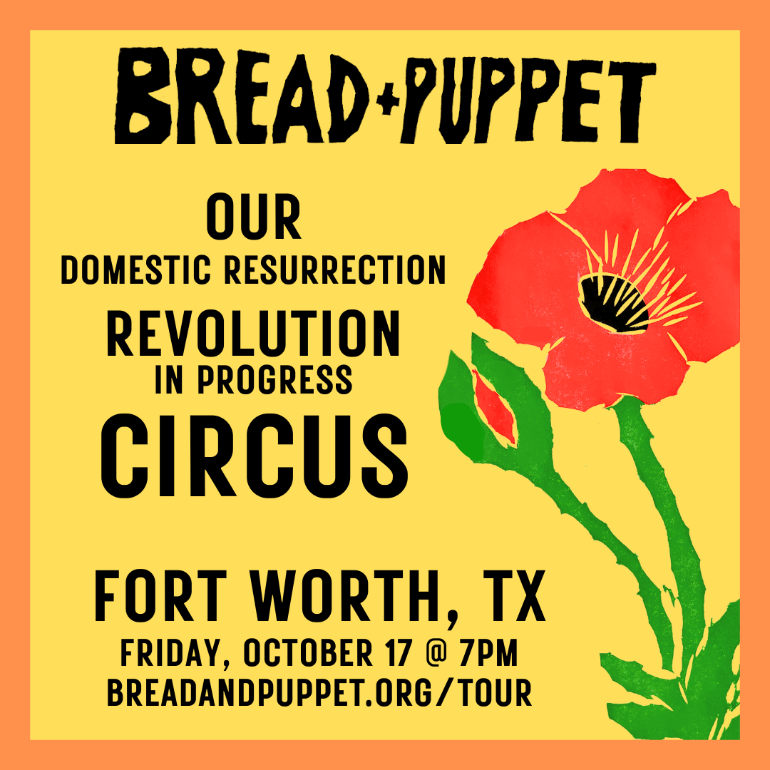Bread and Puppet, the world renowned Vermont-based theater makes a stop in Ft Worth, TX at Hip Pocket Theatre!